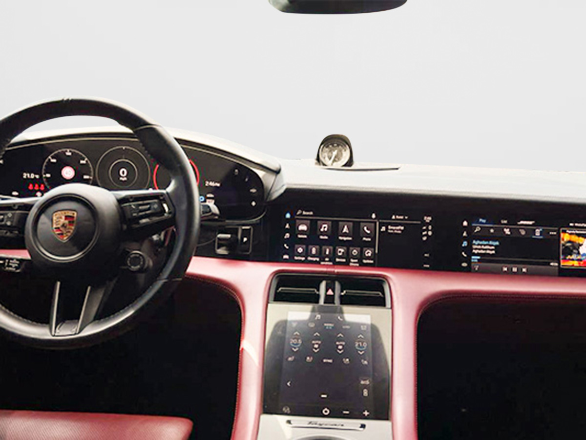 Inside, the Taycan’s cabin is a fusion of luxury and technology, featuring leather-free or premium leather upholstery, a driver-focused layout, and cutting-edge displays. The Porsche Advanced Cockpit includes a curved 16.8-inch digital instrument cluster, a 10.9-inch central touchscreen, and an optional passenger display. Features like Apple CarPlay®, Android Auto™, and a Bose® or Burmester® sound system ensure a connected and immersive experience.